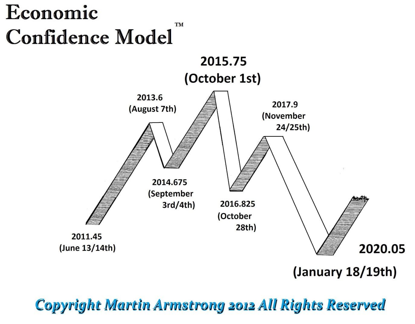 But I will refrain and stop here…. Let us look at one of the most accurate forecasters these last 30 years – Martin Armstrong. His computer cycles have been built around his discovery of (aptly named) ‘Armstrong’s Economic Confidence Model’, which enabled him to make these uncannily accurate predictions based on economic cycles he had identified looking back at hundreds of years of data (reportedly going back to the birth of the Roman empire). In fact the database he has built is reported to be the largest and most in-depth databank of its kind in the world.