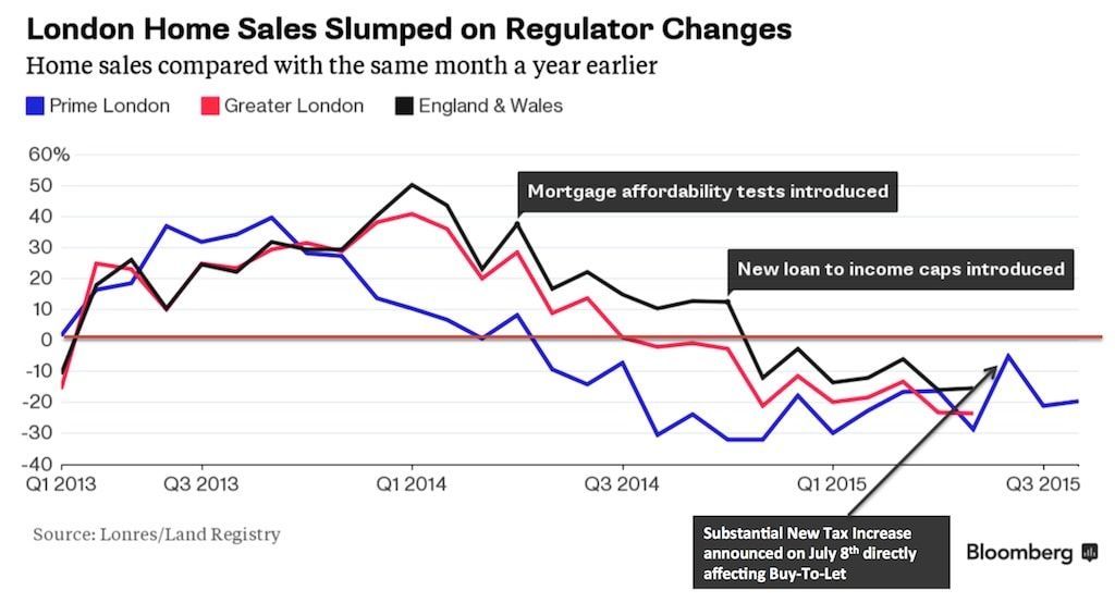 Of course recent taxation changes affecting UK property are another nail in the coffin with 150% rise in Buy-To-Let tax. Also remember Prime London leads Greater-London who in turns leads the country.