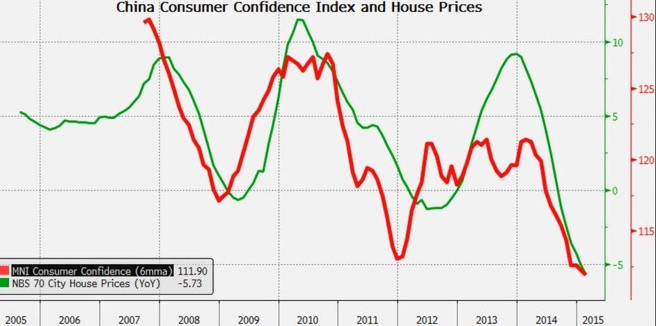 As Reuters reported earlier, average new home prices in China’s 70 major cities dropped 5.7 percent last month from a year ago, the sixth consecutive fall, following January’s 5.1 percent decline. It was the biggest annual decline in the nationwide survey since it began in 2011.