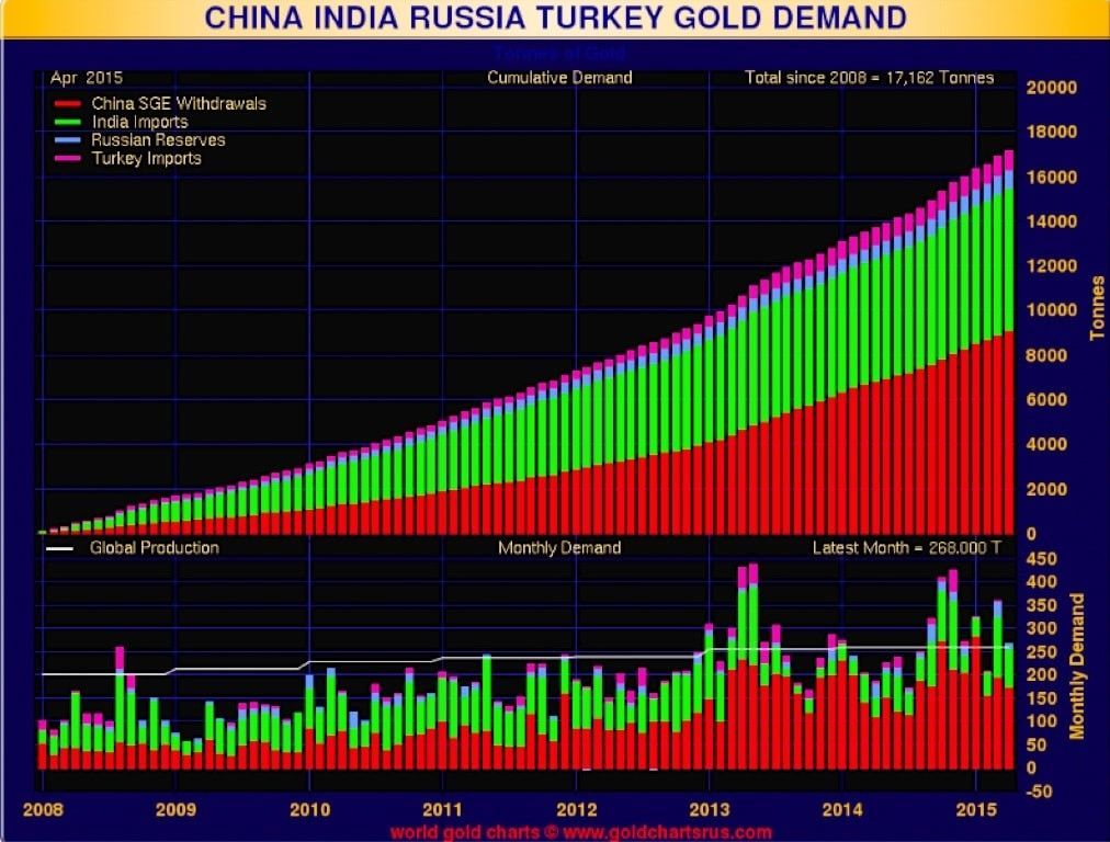 Gold withdrawals on the Shanghai Gold Exchange the past two weeks were larger than the amount of gold delivered on COMEX during 2014 and greater than the amount of gold Germany has repatriated from the New York Fed since 2013.