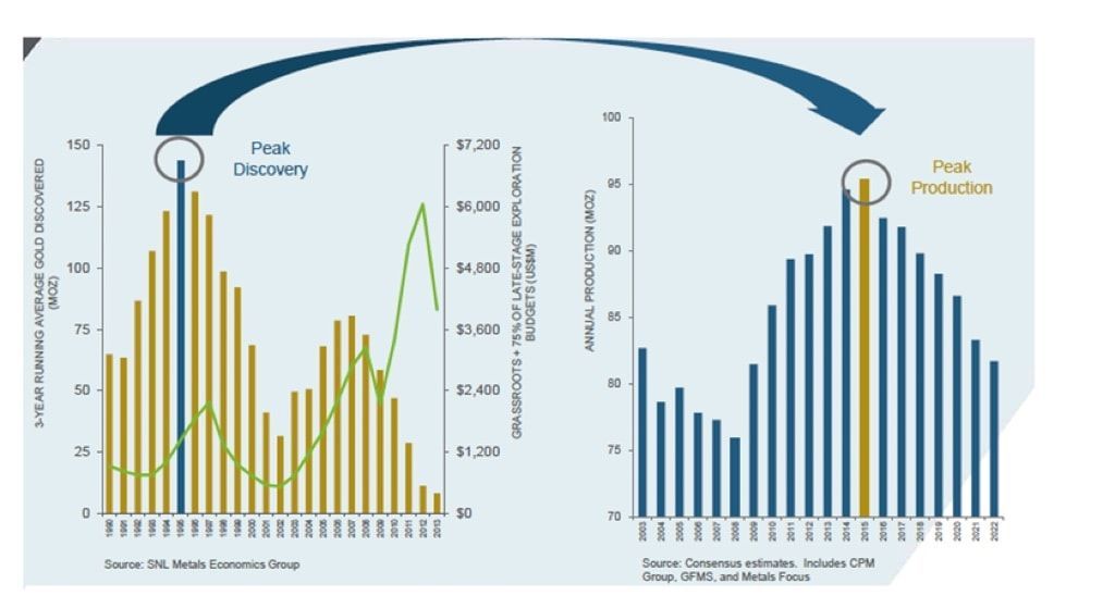 Many industry experts contend that 2015 will be the peak year for gold production. According to a report by World Gold Council (or WGC), gold mining output increased and set another record in 2014 to reach 3,114 tons. Going forward, however, WGC maintains that “growth in supply from such projects continues to diminish and is likely to cap out in 2015 as the supply pipeline thins.”