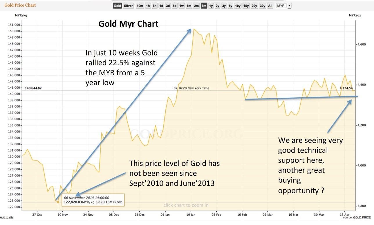 Gold then rallied quickly into mid January 2015 seeing a 17.5% appreciation against Sing$ and a 22.5% return against the MYR in just 10 weeks !