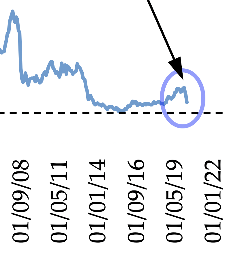 A 5-times revaluation from todays level to match the historical average of over 100 years (US$ 8,600 in today’s cash terms)