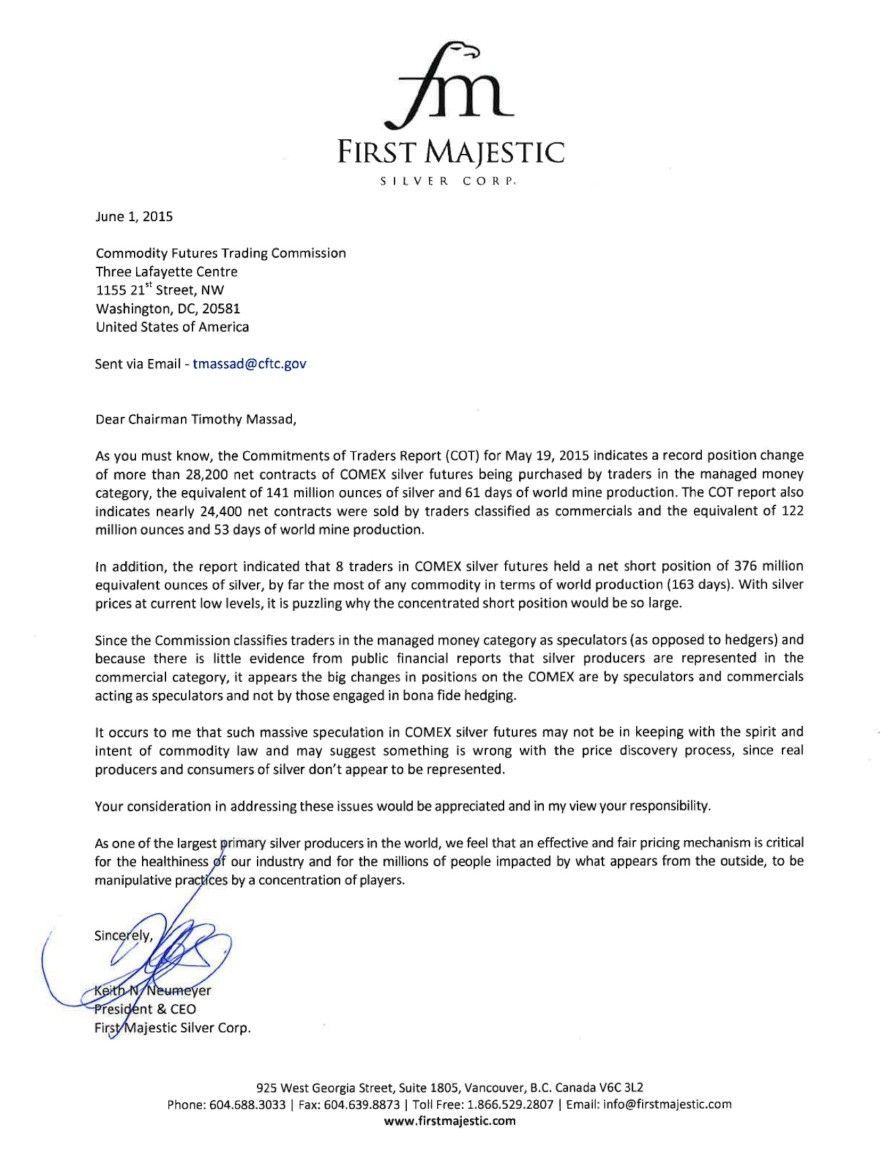 So onto Silver Majestic Silver and their petition to the regulatory authority the CFTC…