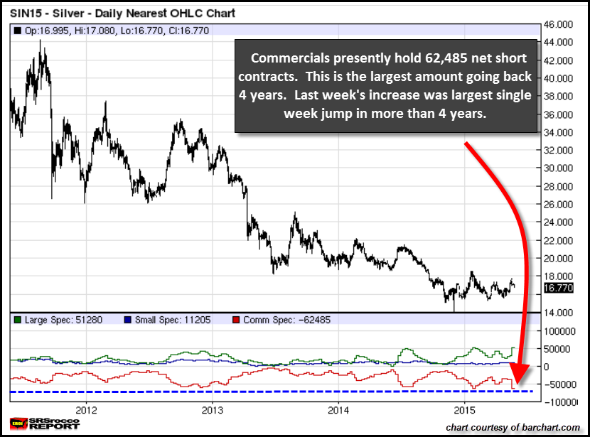 May 19, 2015 – Commercial Net Shorts = 62,485 – Silver high price = $17.74