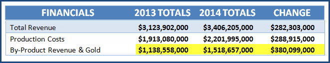I would like to point out just how much by-product (and gold) revenue the group reported in 2014: