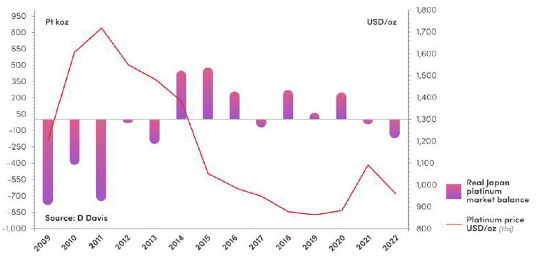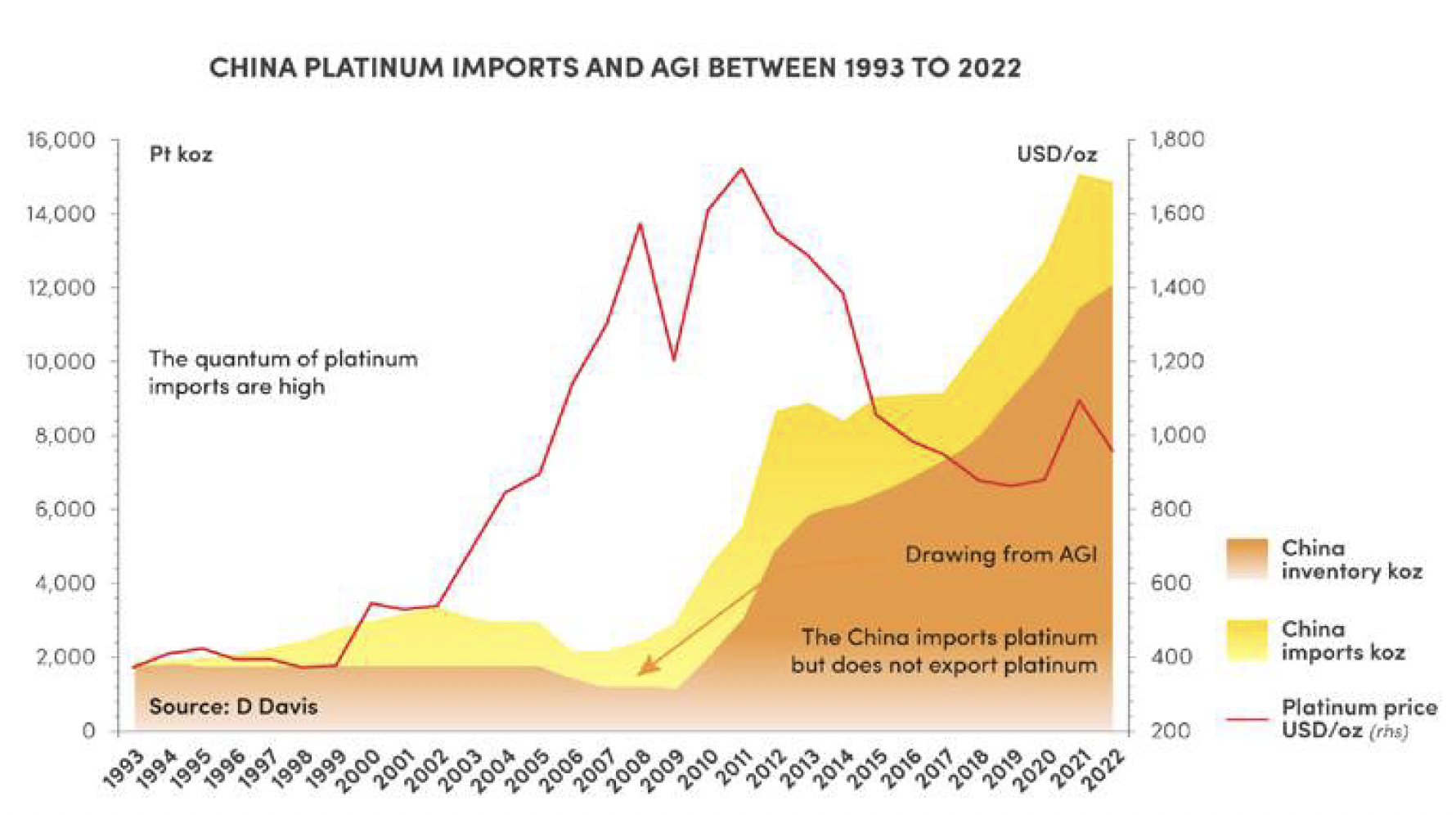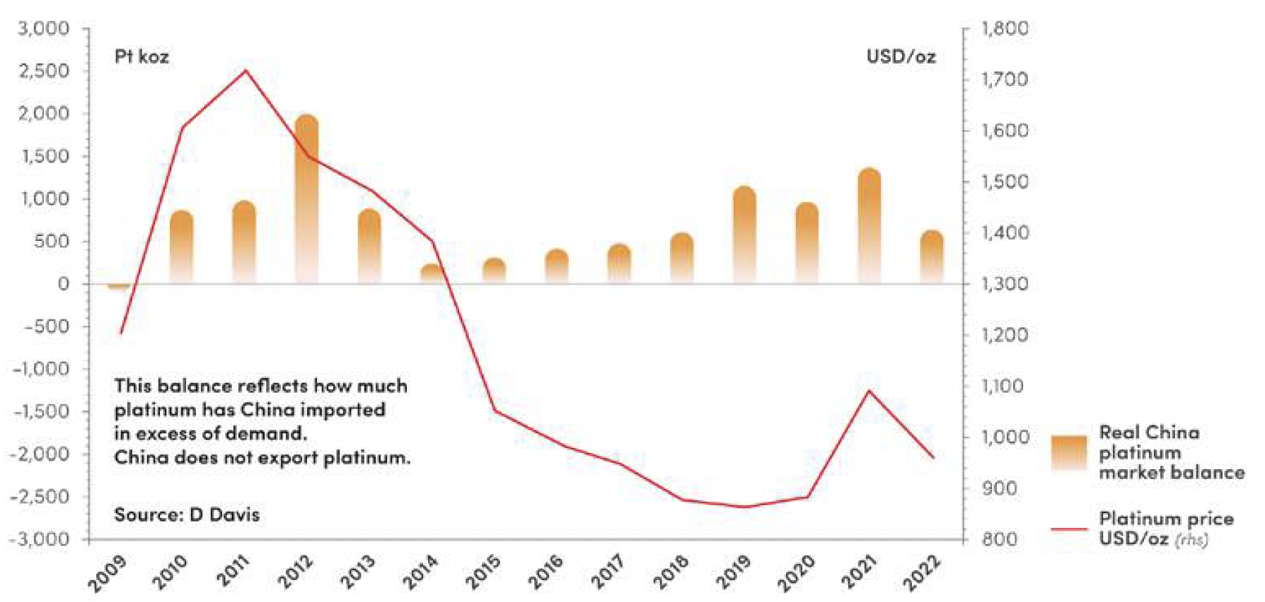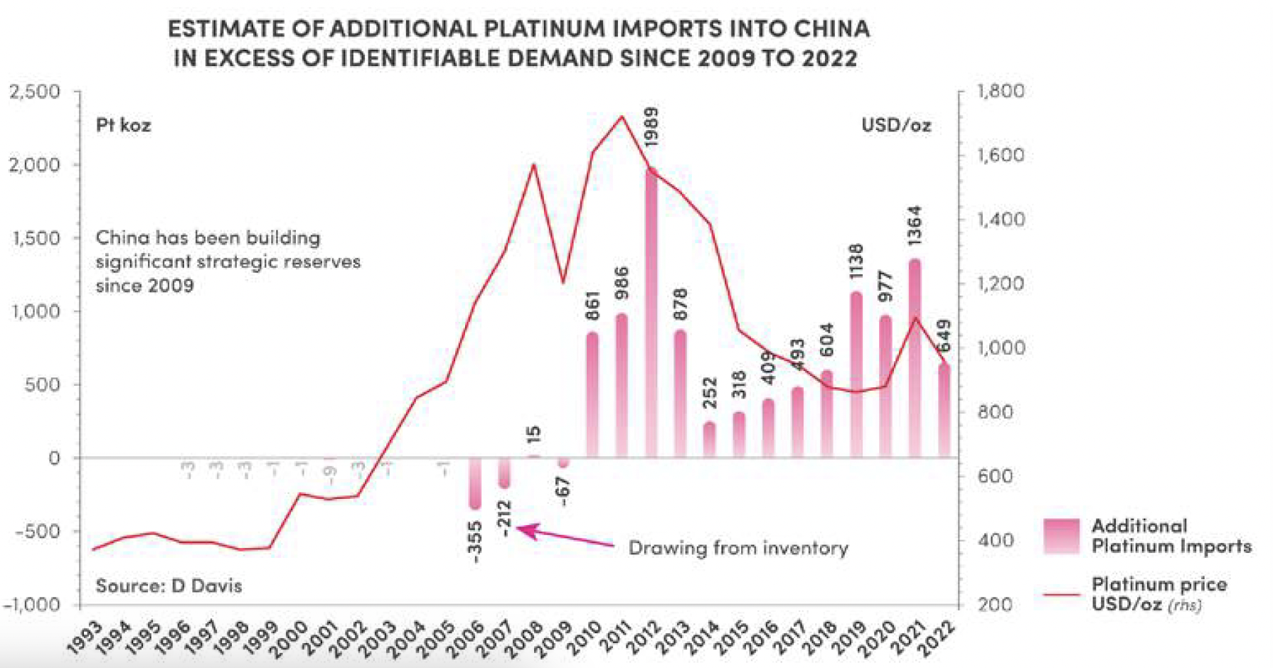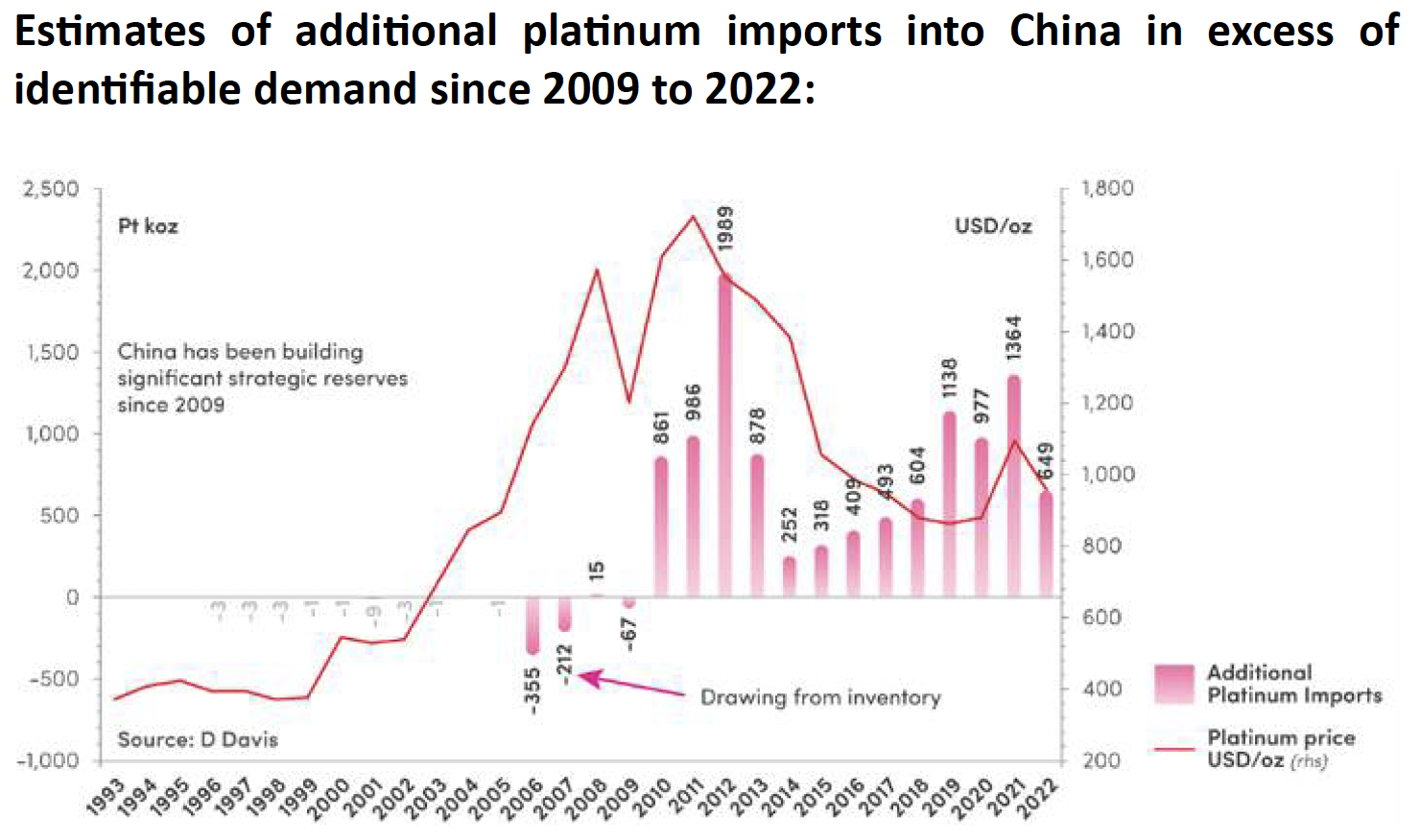 The quantum of platinum imports into China (and via Hong Kong into China) have exceeded demand since 2009.