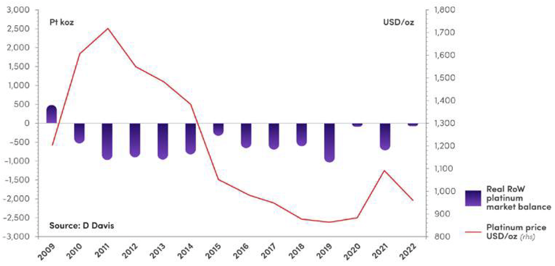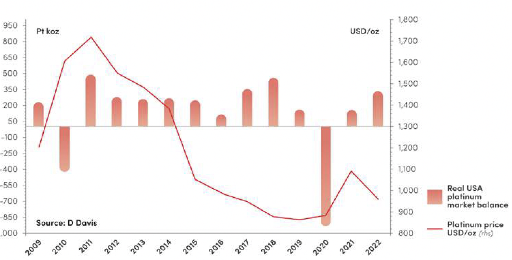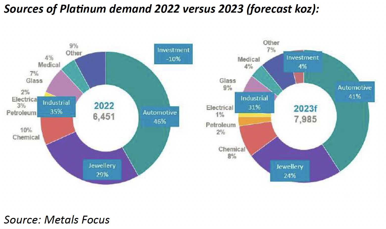 The WPIC recently updated this forecast for 2023 and is now indicating a platinum market deficit of ~1,005koz on the back of stronger demand and weaker supply. Under these circumstances, the market will tighten and put upward pressure on the price of platinum.