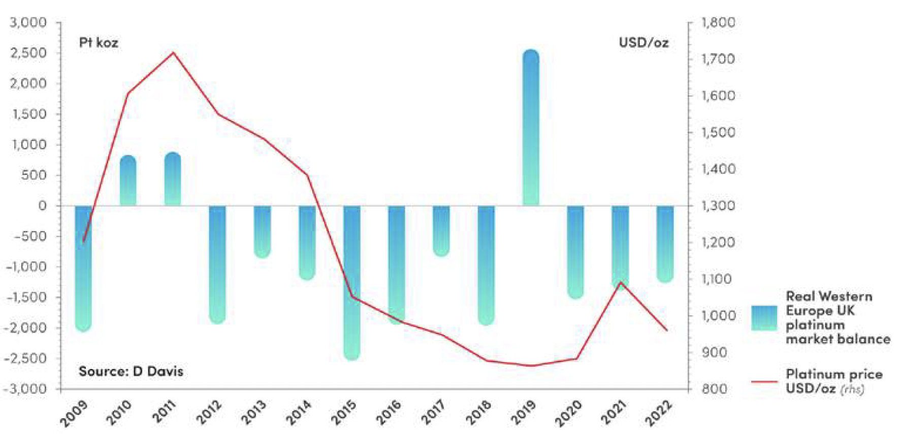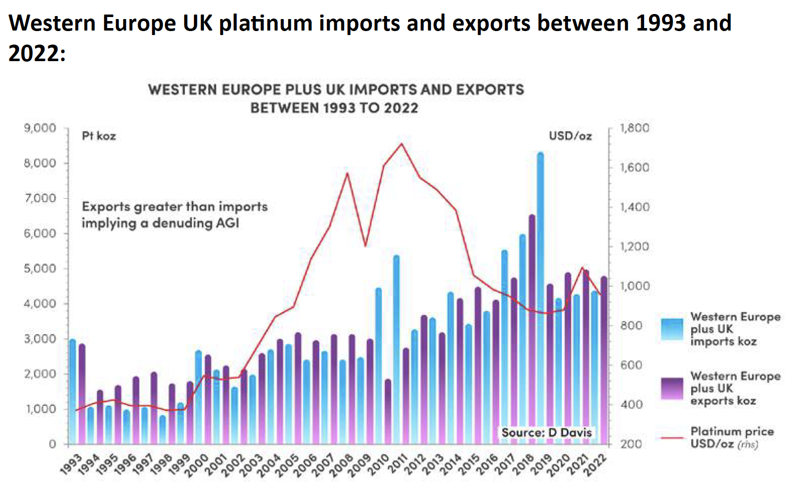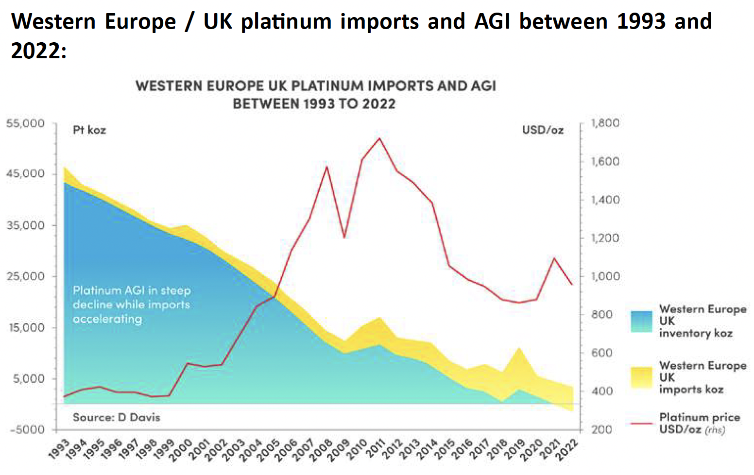 Western Europe / UK platinum imports and AGI between 1993 and 2022: