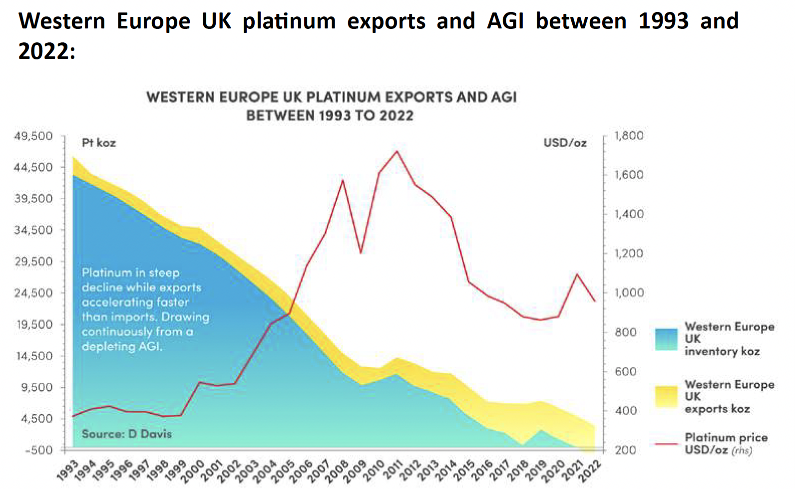 Western Europe UK platinum exports and AGI between 1993 and 2022:
