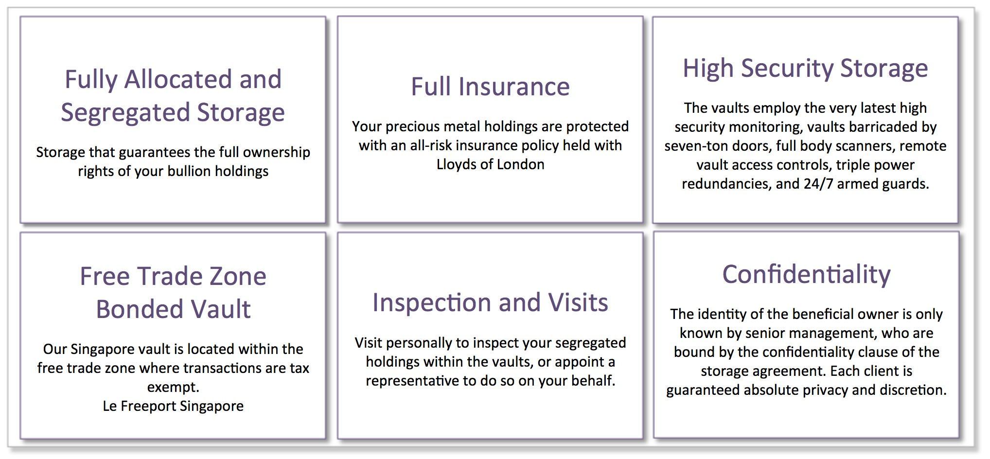 We at Indigo Precious Metals offer our clients their own individual, segregated, allocated vault holdings with Brinks vaulting in Freeport Singapore, not only giving you a tax free vehicle, segregated holdings, solely in your name, insured to the full value by Lloyds of London and access to full liquidity (ability to sell at any time), but also full vaulted reports from our vaulting agent every month with full audits in one of the worlds premier A class vaulting houses. To read more on what we are offering read here.
