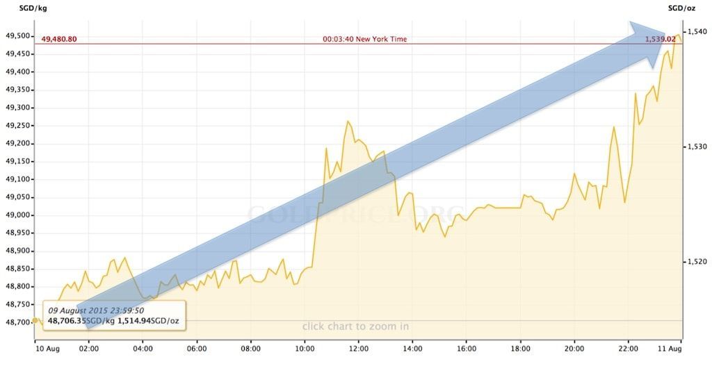 Sing$ has dropped against the Gold price over 3 % today as I write this, presently trading at 1565 . ( Updated 6pm 11th August)